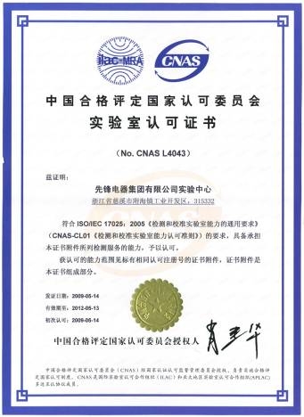先鋒電器 浙江省著名商標